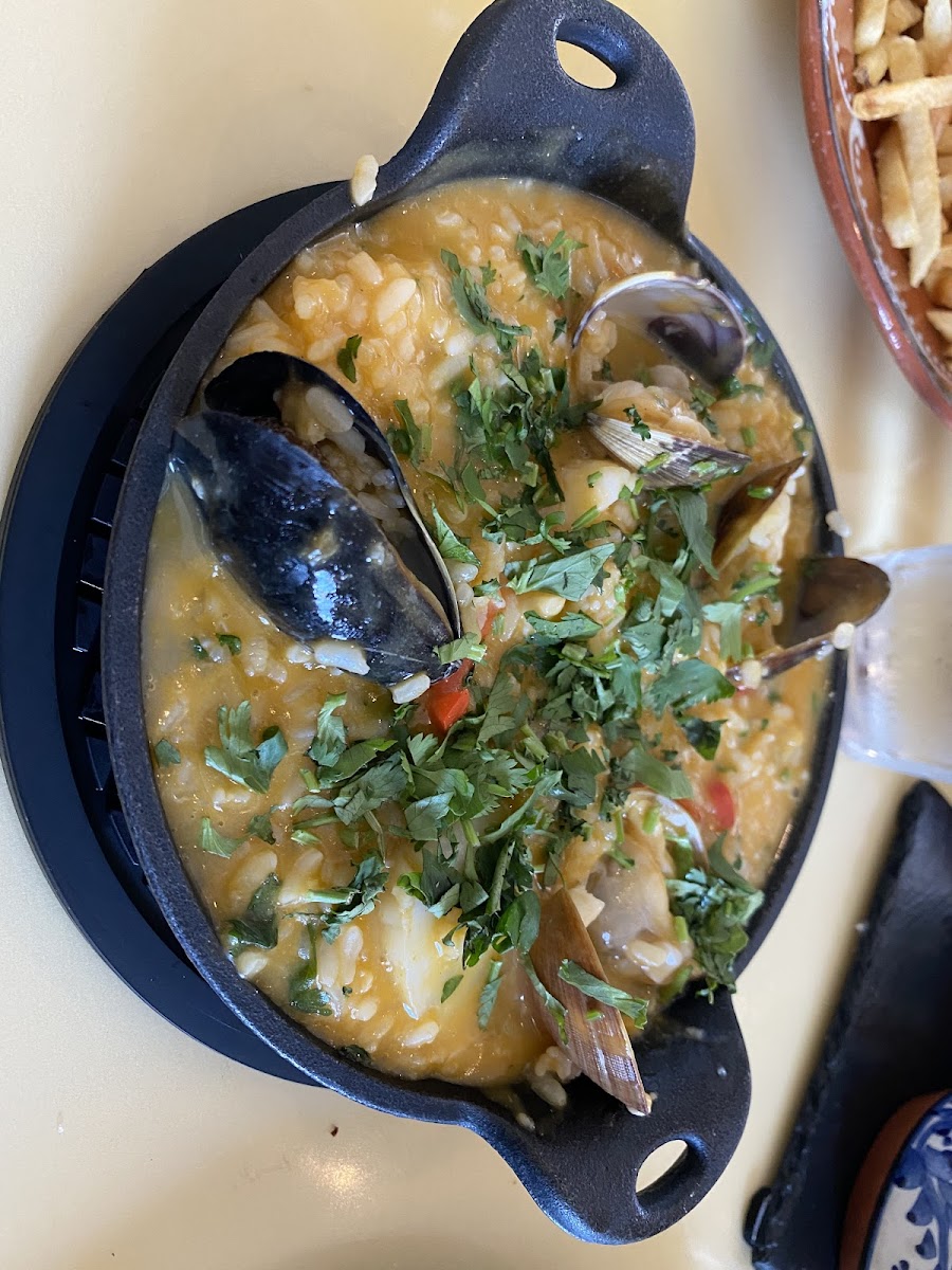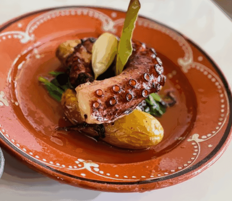 What stands out first is the approach to Portuguese small plates. Petiscos, by definition, are meant for sharing, and here they’ve perfected that ritual. The grilled octopus arrives smoky and tender, curled like a comma on a slate-black plate. Clams with garlic broth come in a steaming clay bowl, begging to be sopped up with slices of house-baked bread. Even the simple potato chips dusted with piri-piri seasoning surprise with their balance of heat and crunch. Watching plate after plate arrive feels like a rhythm, almost ceremonial.